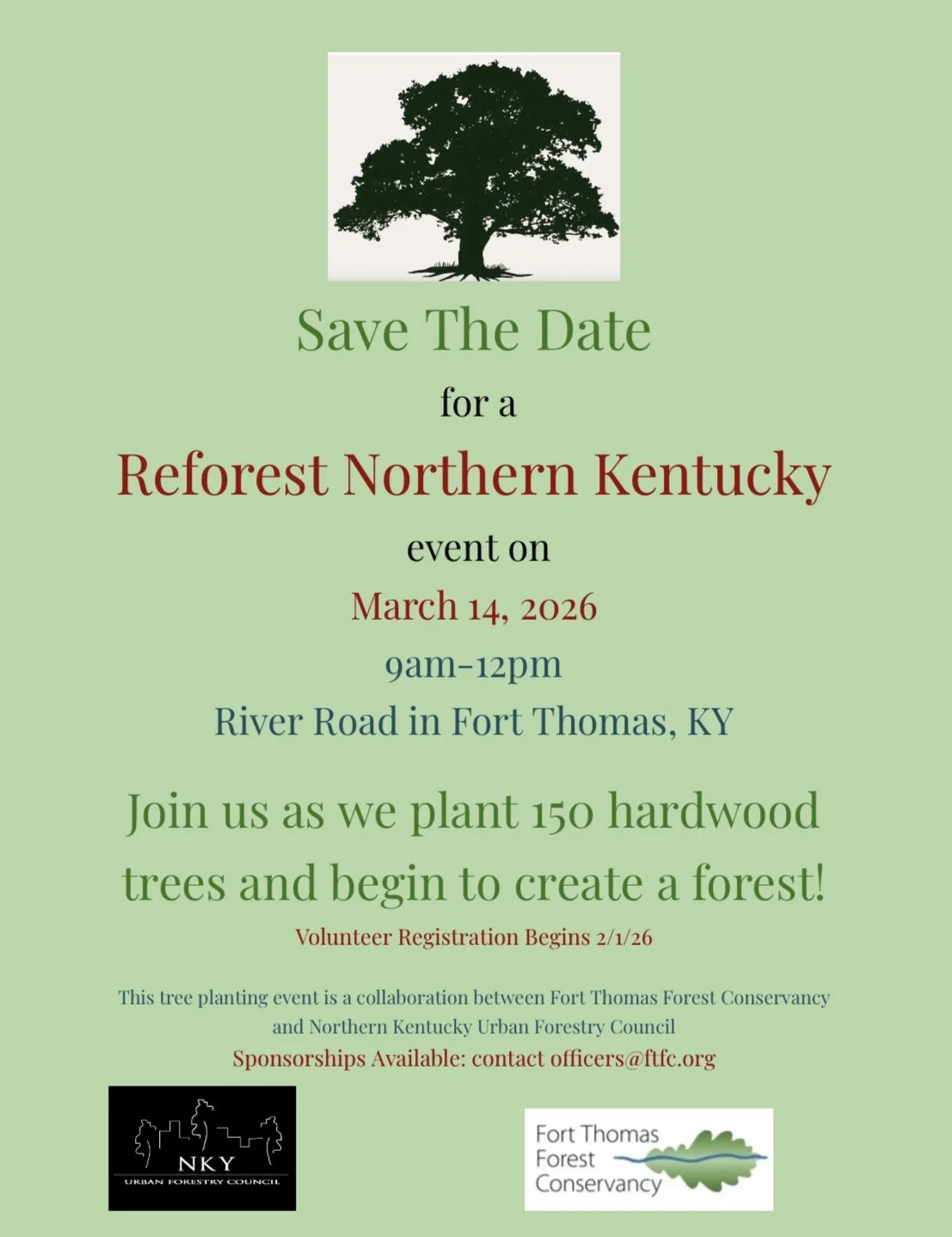 This tree planting event is a collaboration between Fort Thomas Forest Conservancy and the NKU Urban and Community Forestry Council.